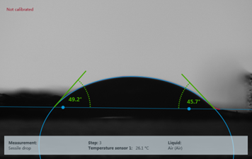 The droplet must be observed throughthe sample surface when analyzing the droplet profile.Therefore, the sample surface must have sufficient light transmission to make the droplets visible under the camera.