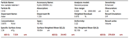2. For dry testing, the particle size range is 0.1μm-1500μm, providing refractive index and density of the sample.