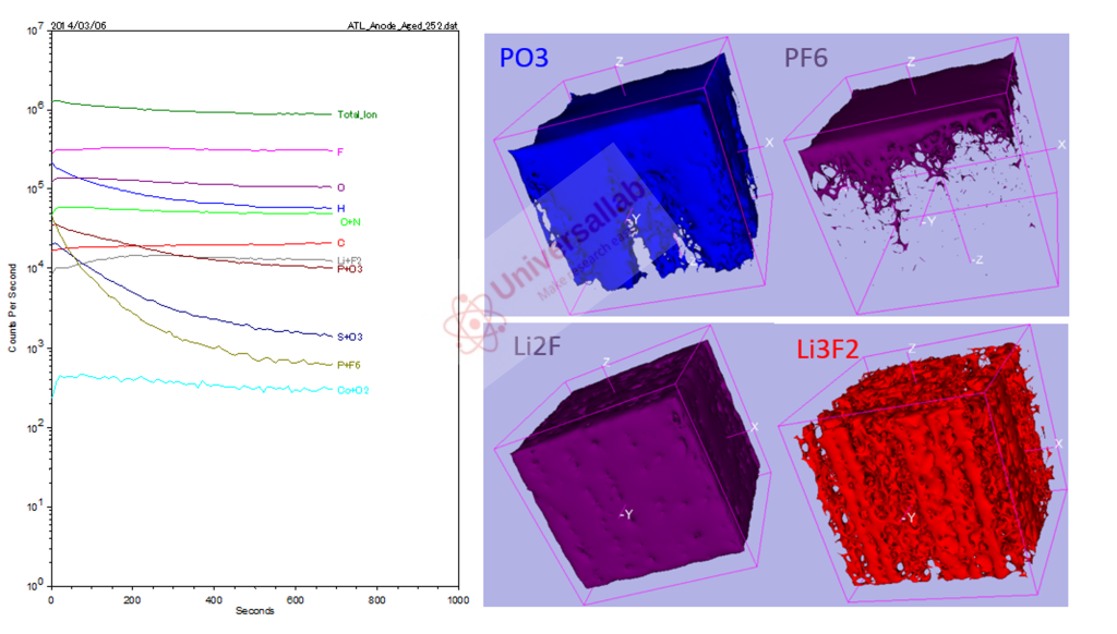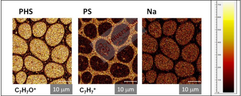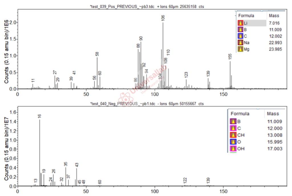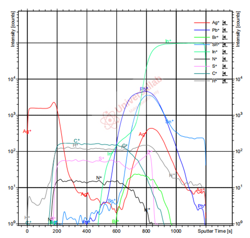 Time-of-Flight Secondary Ion Mass Spectrometry (TOF-SIMS) provides elemental, chemical state, and molecular information from surfaces of solid materials. The average depth of analysis for a TOF-SIMS measurement is approximately 1 nm. Physical Electronics TOF-SIMS instruments provide an ultimate spatial resolution of less than 0.1 µm. Spatial distribution information is obtained by scanning a micro focused ion beam across the sample surface. Depth distribution information is obtained by combining TOF-SIMS measurements with ion milling (sputtering) to characterize a thin film structure. In addition, the Physical Electronics TOF-SIMS instrument provides a unique 3D analysis capability that combines in-situ focused ion beam sectioning with high mass resolution and high spatial resolution imaging (HR2) to provide 3D chemical characterization.
